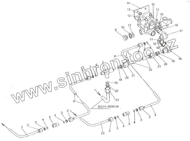 Каталог запасных частей к технике: МЗКТ-80211. Установка клапана ускорительного стояночного тормоза