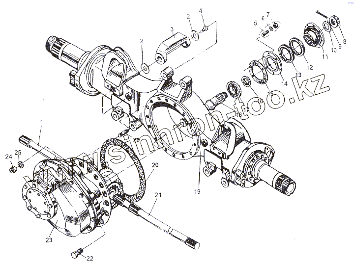 Каталог запасных частей к технике: МЗКТ-80211. Установка редуктора и заднего вала