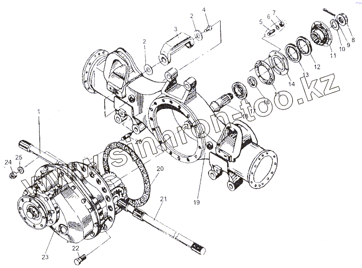 Каталог запасных частей к технике: МЗКТ-80211. Установка редуктора и заднего вала