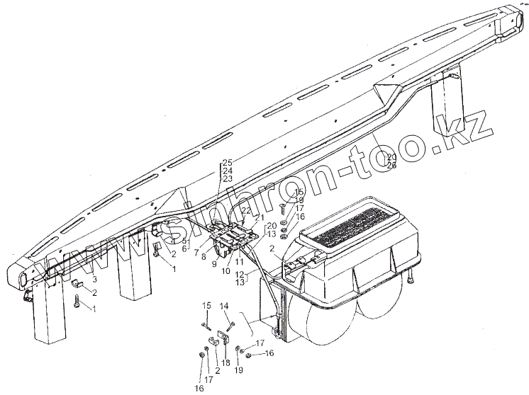 Крепление задних тормозных камер и шлангов