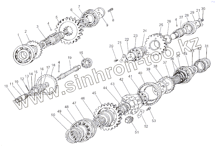 Каталог запасных частей к технике: МЗКТ-80211. Валы и шестерни раздаточной коробки