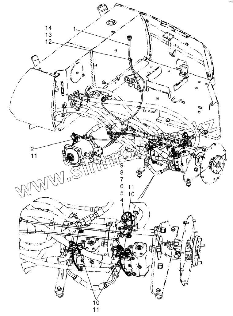 Каталог запасных частей к технике: New Holland Бульдозер D150B TIER-3. HARNESS, PUMP AND MOTORS