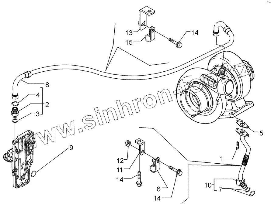 Каталог запасных частей к технике: New Holland Бульдозер D150B TIER-3. TURBOCHARGER DRAIN LINE