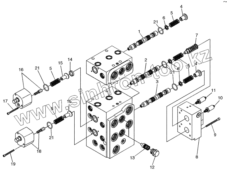 Каталог запасных частей к технике: New Holland Бульдозер D150B TIER-3. VALVE ASSY, THREE SPOOL SPOOL