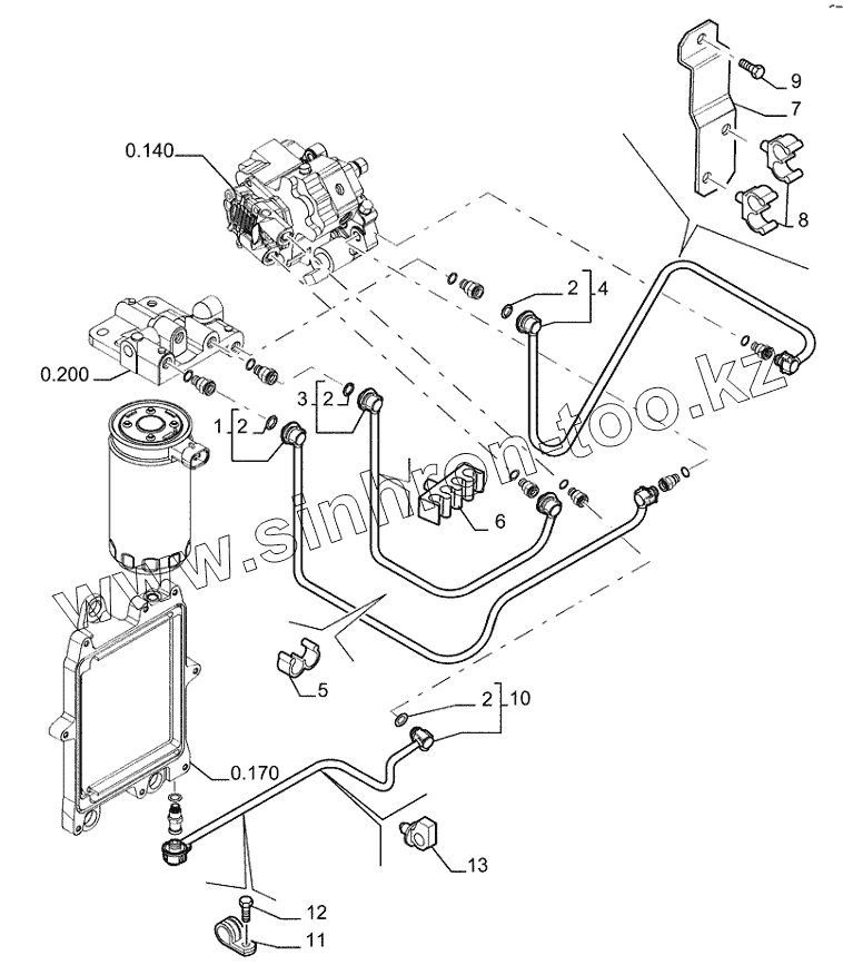 Каталог запасных частей к технике: New Holland Бульдозер D180 TIER-3. 0.203(01) PIPING FUEL