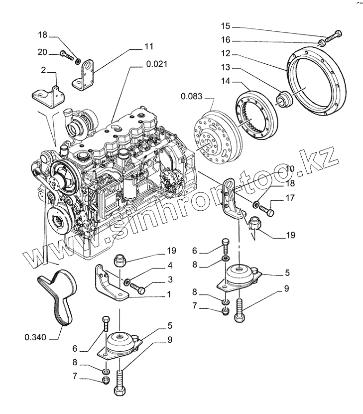 Каталог запасных частей к технике: New Holland Бульдозер D180 TIER-3. 0.505(01) SUSPENSION ENGINE