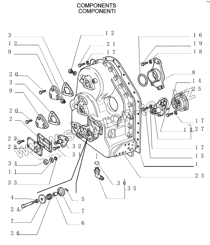 Каталог запасных частей к технике: New Holland Бульдозер D180 TIER-3. 1.211(03) TRANSMISSION CASE
