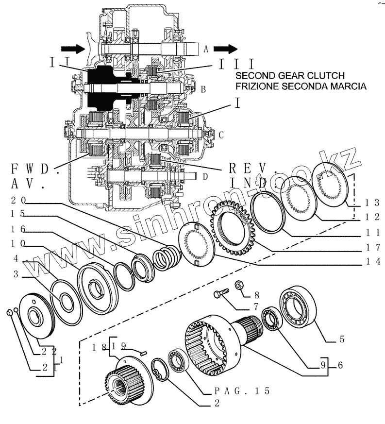 Каталог запасных частей к технике: New Holland Бульдозер D180 TIER-3. 1.211(18) TRANSMISSION COMPONENTS
