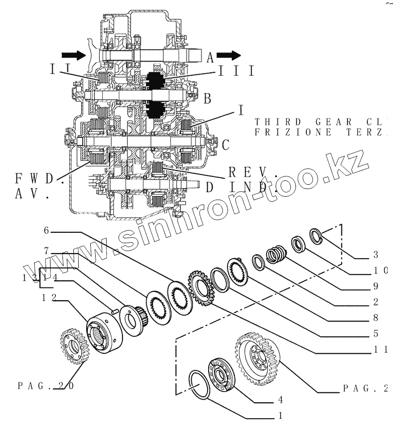 Каталог запасных частей к технике: New Holland Бульдозер D180 TIER-3. 1.211(19) TRANSMISSION COMPONENTS