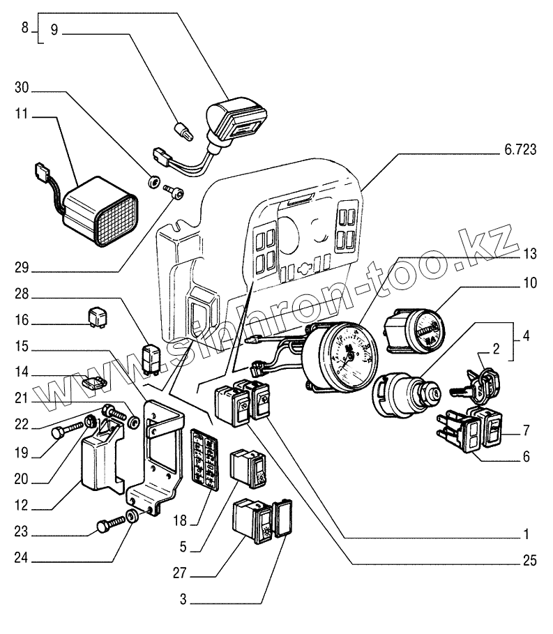 Каталог запасных частей к технике: New Holland Бульдозер D255. ELECTRIC COMPONENTS DASHBOARD