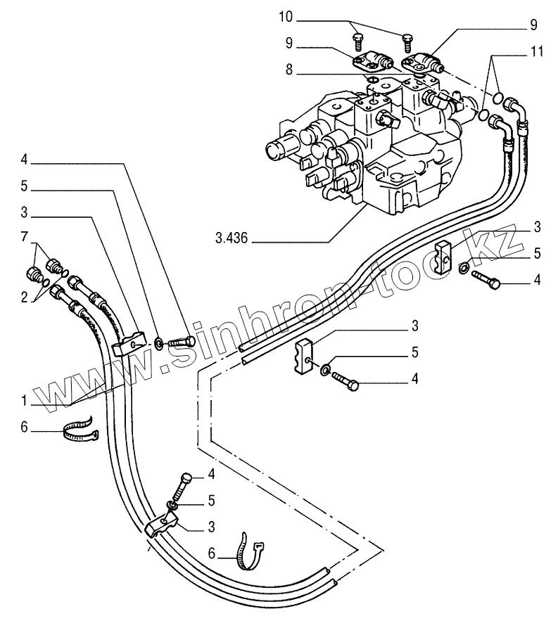 Каталог запасных частей к технике: New Holland Бульдозер D255. PIPING HYDRAULIC TILT