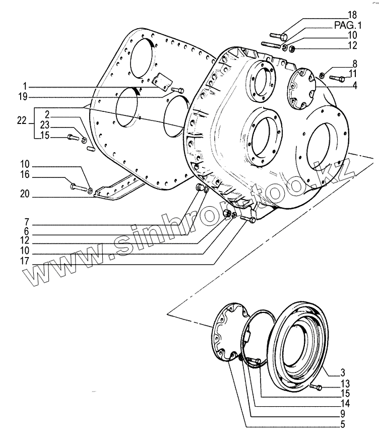 Каталог запасных частей к технике: New Holland Бульдозер D255. REAR TRANSMISSION CASE