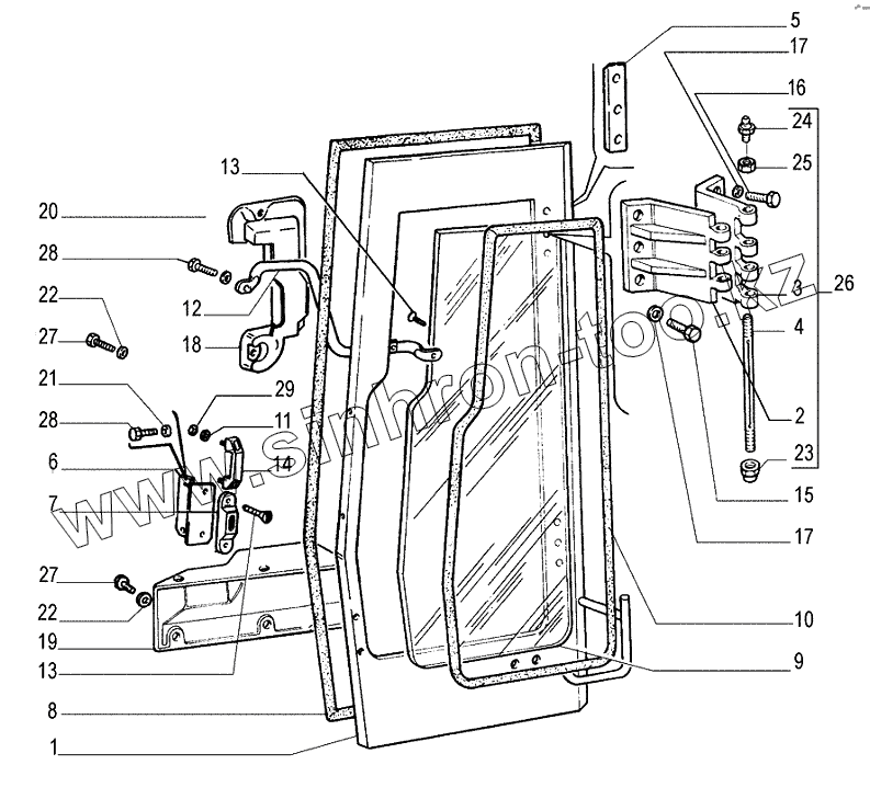 Каталог запасных частей к технике: New Holland Бульдозер D255. ROPS CAB DOOR OPTIONAL CODE 784133051
