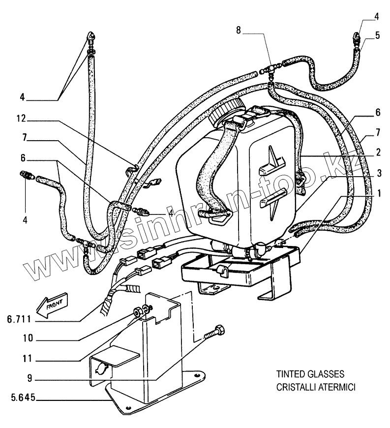 Каталог запасных частей к технике: New Holland Бульдозер D255. ROPS CAB WINDSHIELD WASHER OPTIONAL CODE 784133051