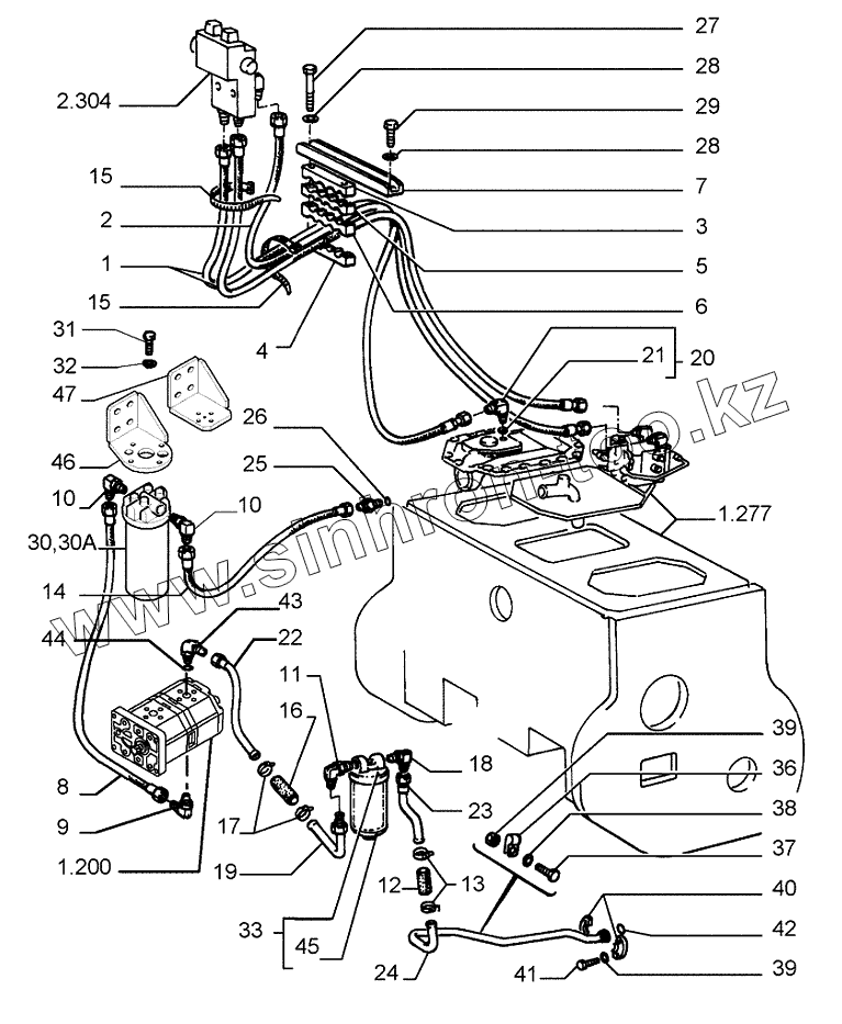 Каталог запасных частей к технике: New Holland Бульдозер D255. STEERING CONNECTING PIPING
