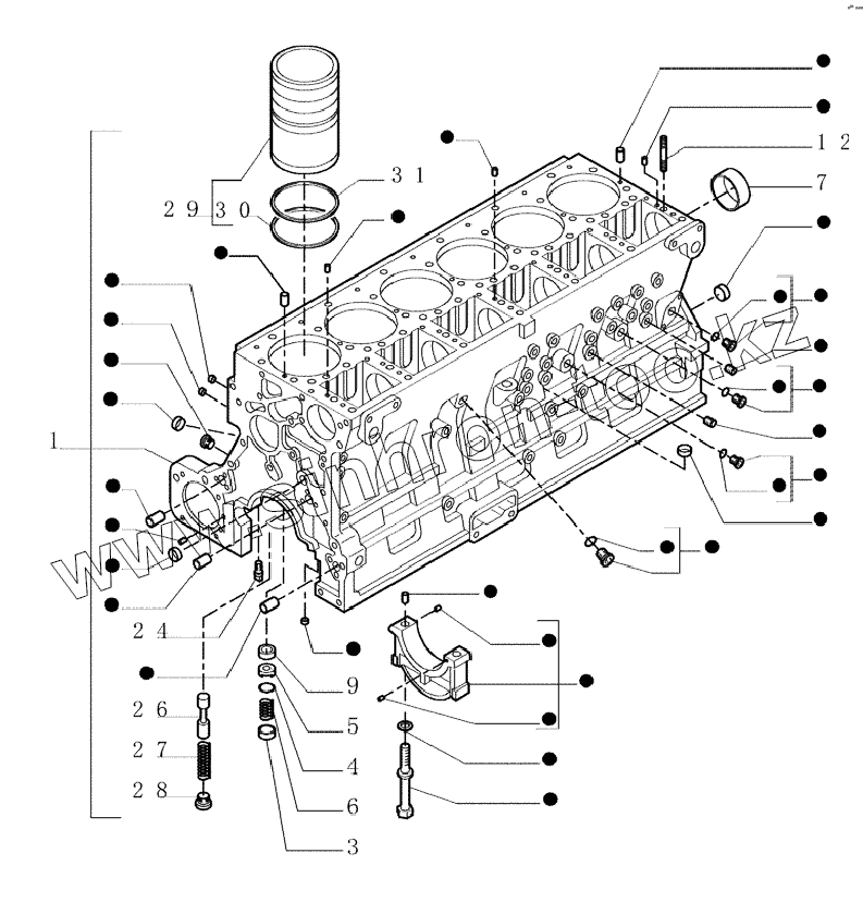 Каталог запасных частей к технике: New Holland Бульдозер D350. 0.040(01) CRANKCASE