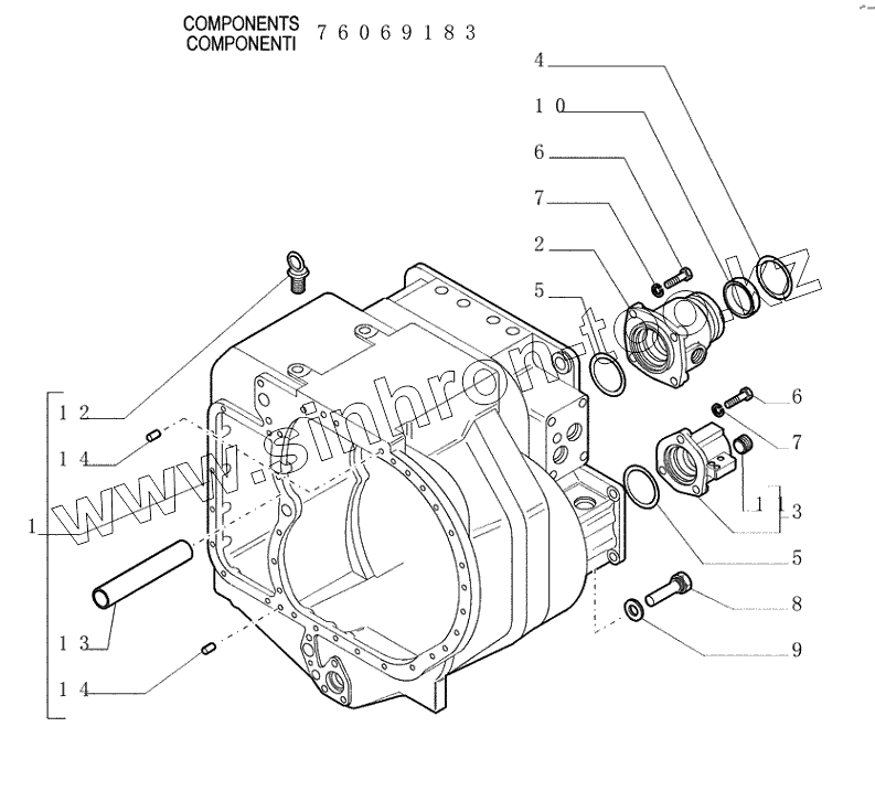 Каталог запасных частей к технике: New Holland Бульдозер D350. 1.211(02) TRANSMISSION CASE