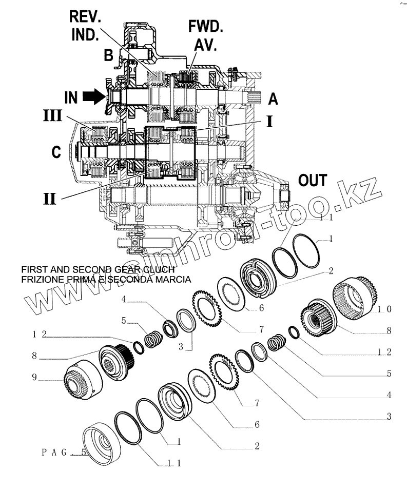 Каталог запасных частей к технике: New Holland Бульдозер D350. 1.211(09) TRANSMISSION COMPONENTS