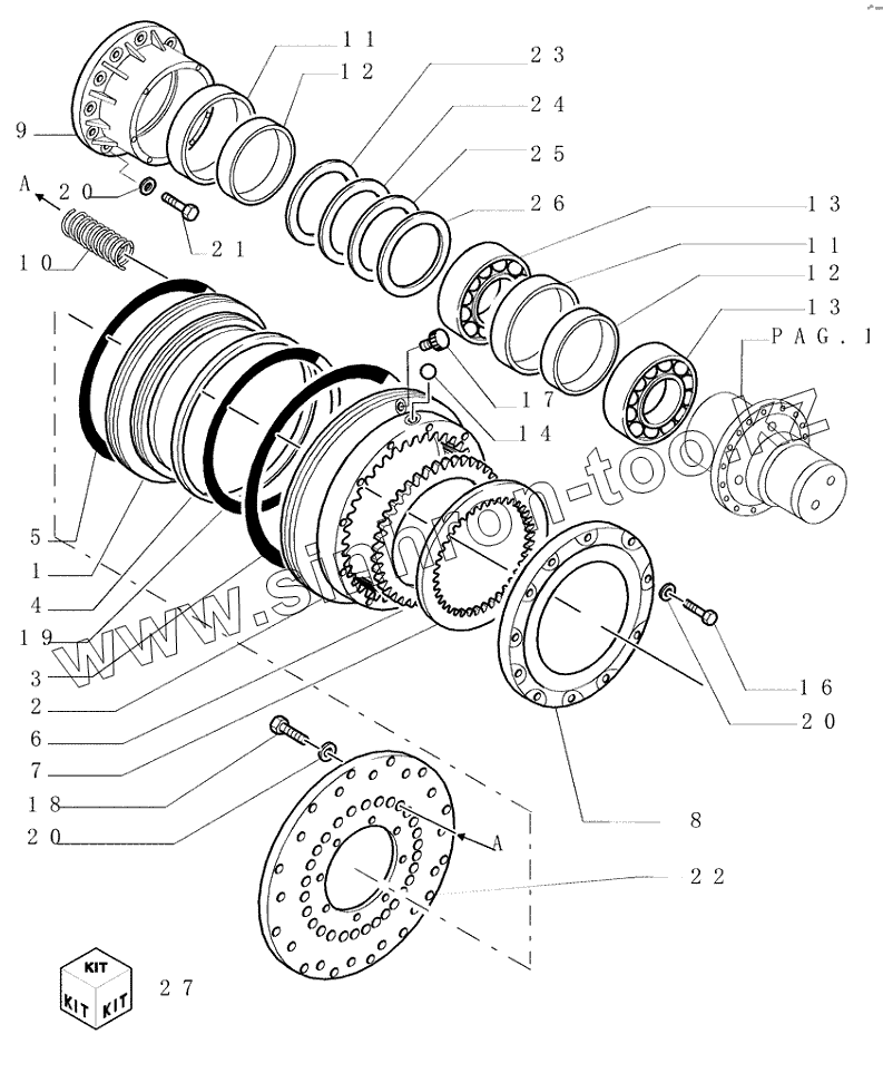 Каталог запасных частей к технике: New Holland Бульдозер D350. 1.266(05) STEERING BRAKES EPICYCLOID
