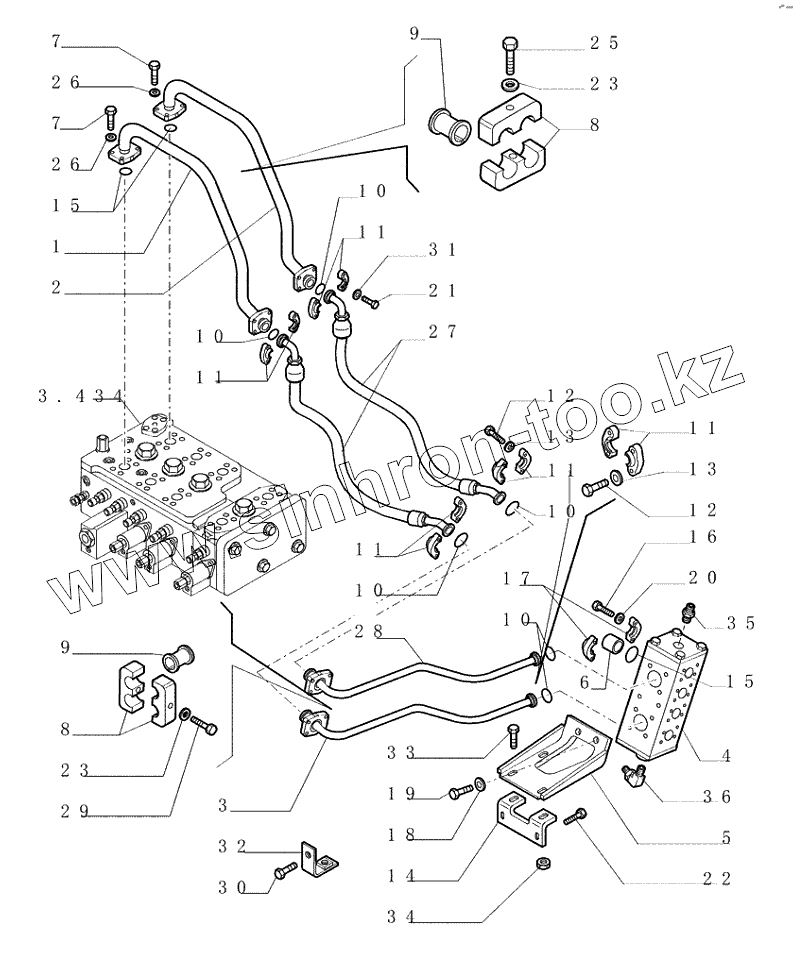 Каталог запасных частей к технике: New Holland Бульдозер D350. 3.470(01) CONTROL PIPING REAR