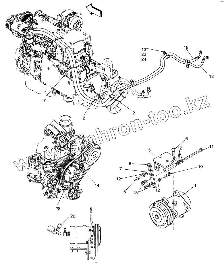 Каталог запасных частей к технике: New Holland Бульдозер D95B Tier 3. CAB AIR CONDITIONING COMPRESSOR