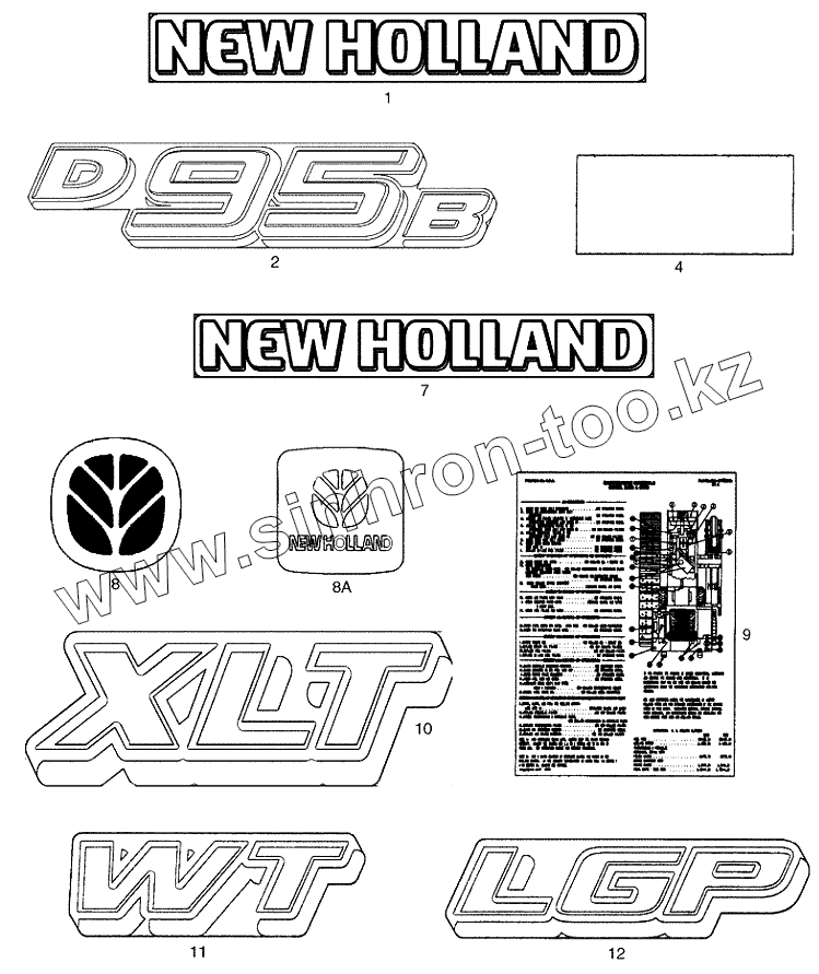 Каталог запасных частей к технике: New Holland Бульдозер D95B Tier 3. DECALS ENGLISH