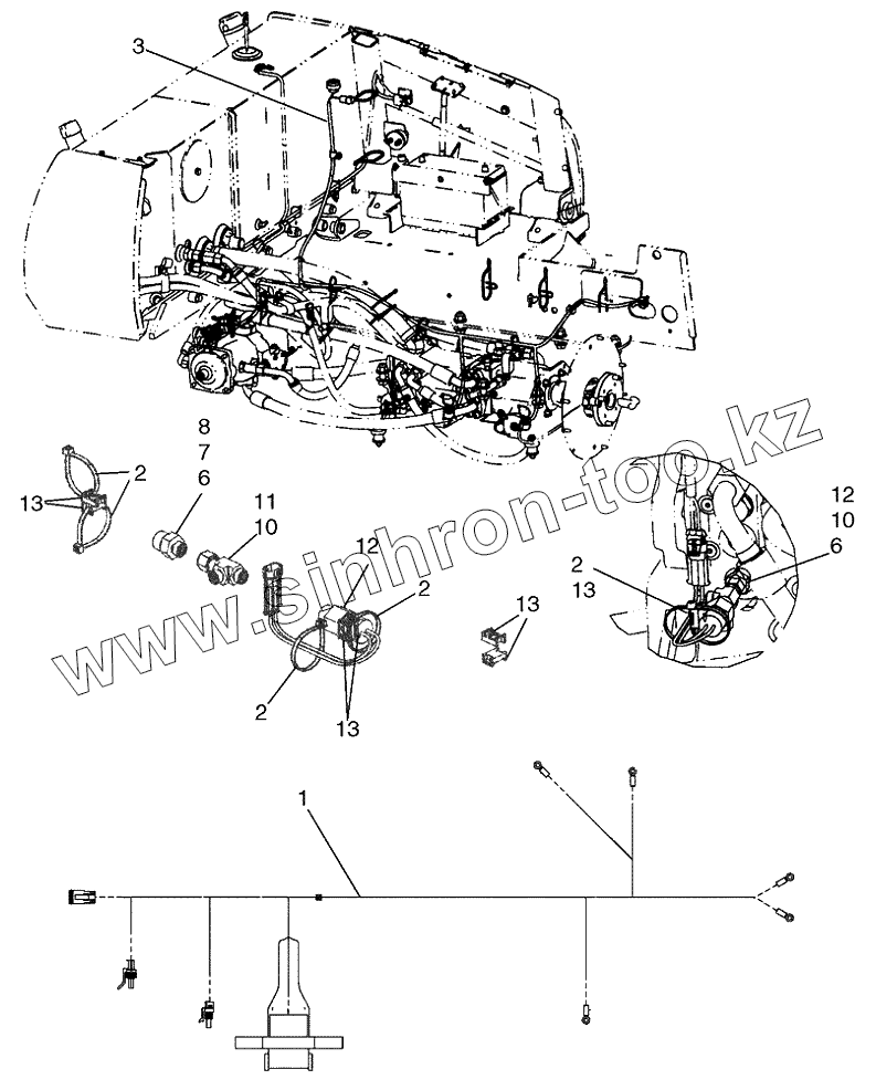 Каталог запасных частей к технике: New Holland Бульдозер D95B Tier 3. HARNESS, REAR WIRE HARNESS