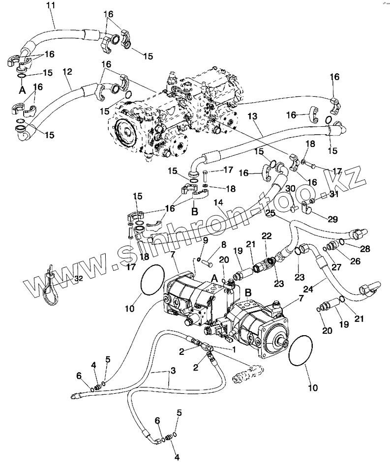 Каталог запасных частей к технике: New Holland Бульдозер D95B Tier 3. HYDROSTATICS MOTOR, DRIVE