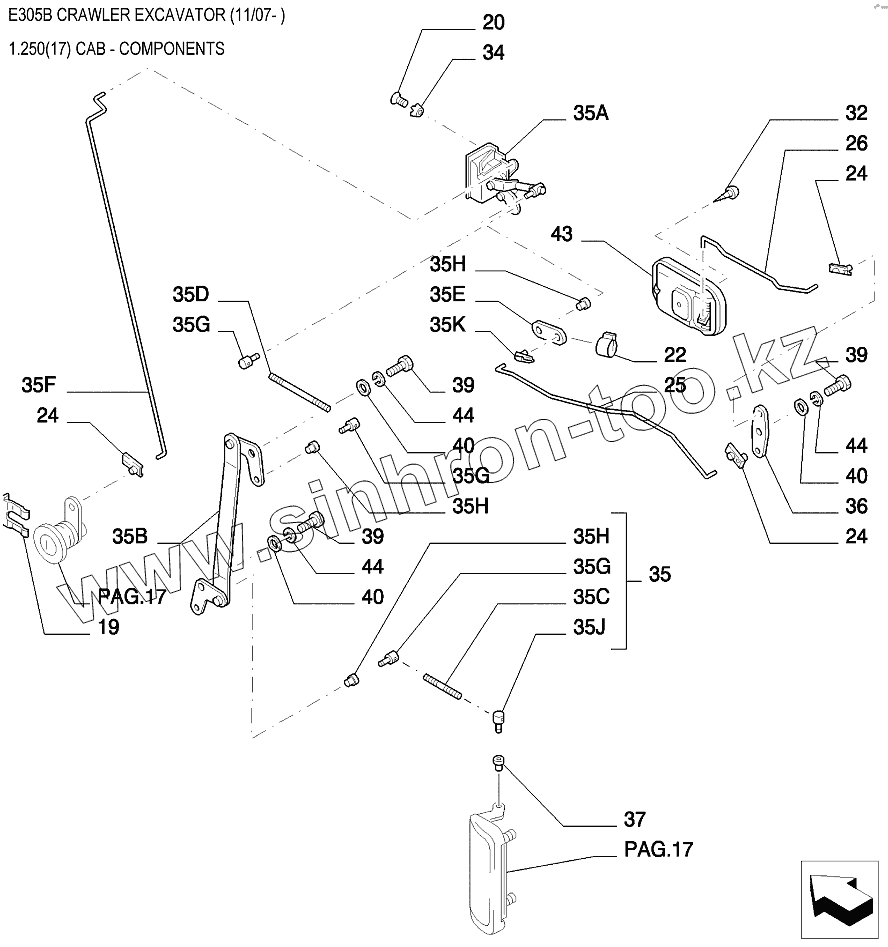 Каталог запасных частей к технике: New Holland Экскаватор E305B. Детали кабины