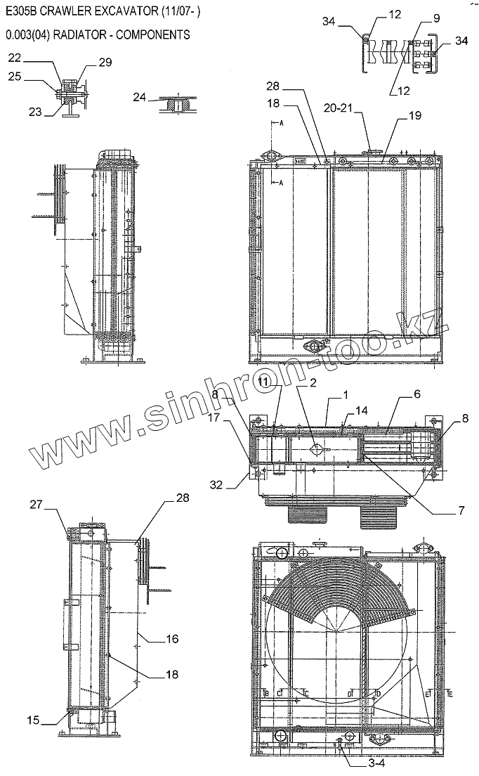 Каталог запасных частей к технике: New Holland Экскаватор E305B. Детали радиатора