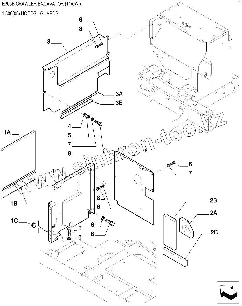 Каталог запасных частей к технике: New Holland Экскаватор E305B. Элементы облицовочные