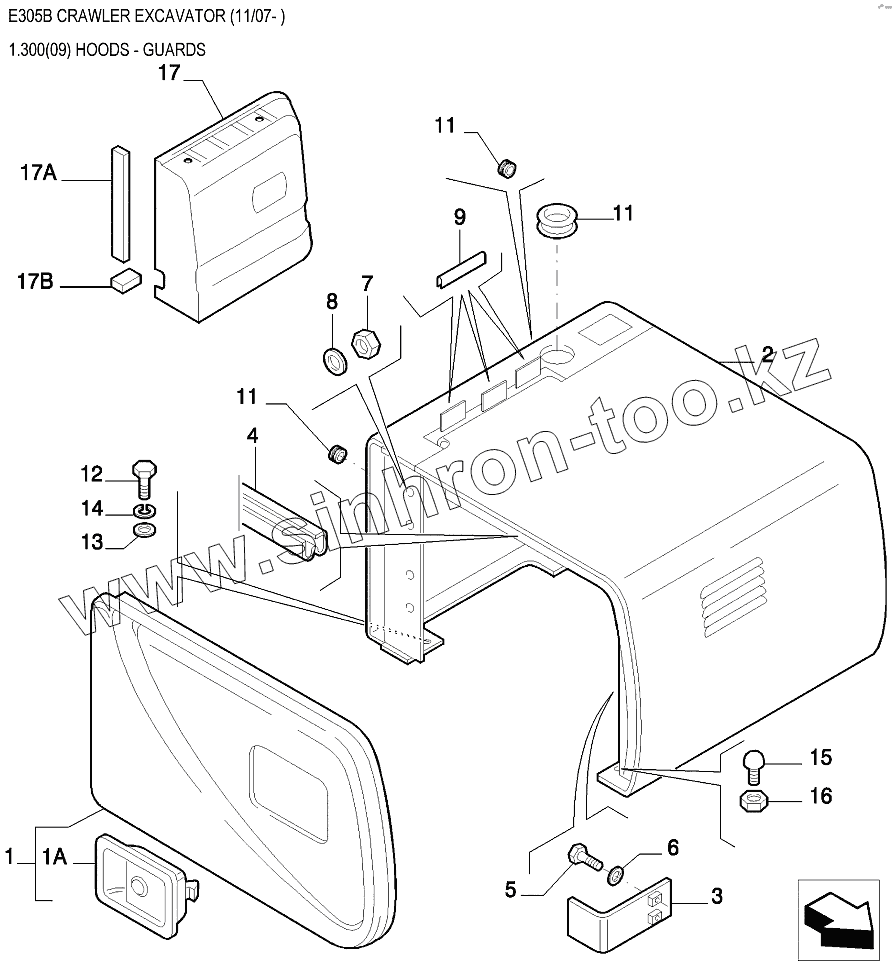 Каталог запасных частей к технике: New Holland Экскаватор E305B. Элементы облицовочные