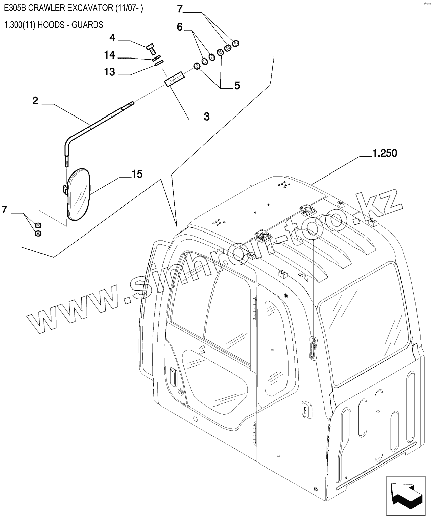Каталог запасных частей к технике: New Holland Экскаватор E305B. Элементы облицовочные