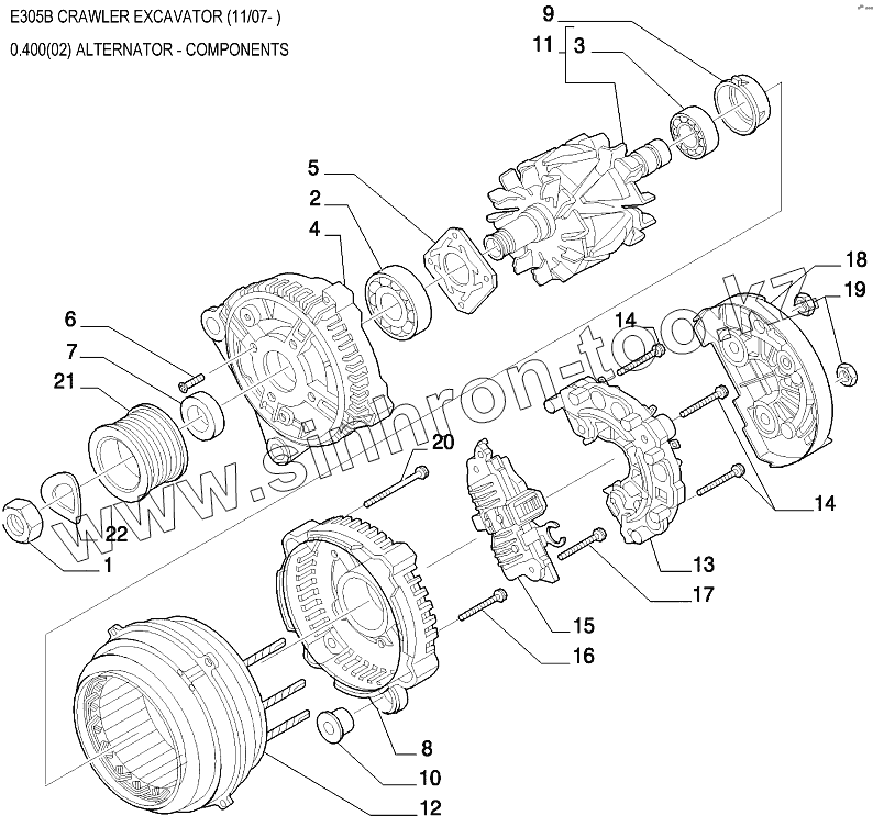 Каталог запасных частей к технике: New Holland Экскаватор E305B. Генератор