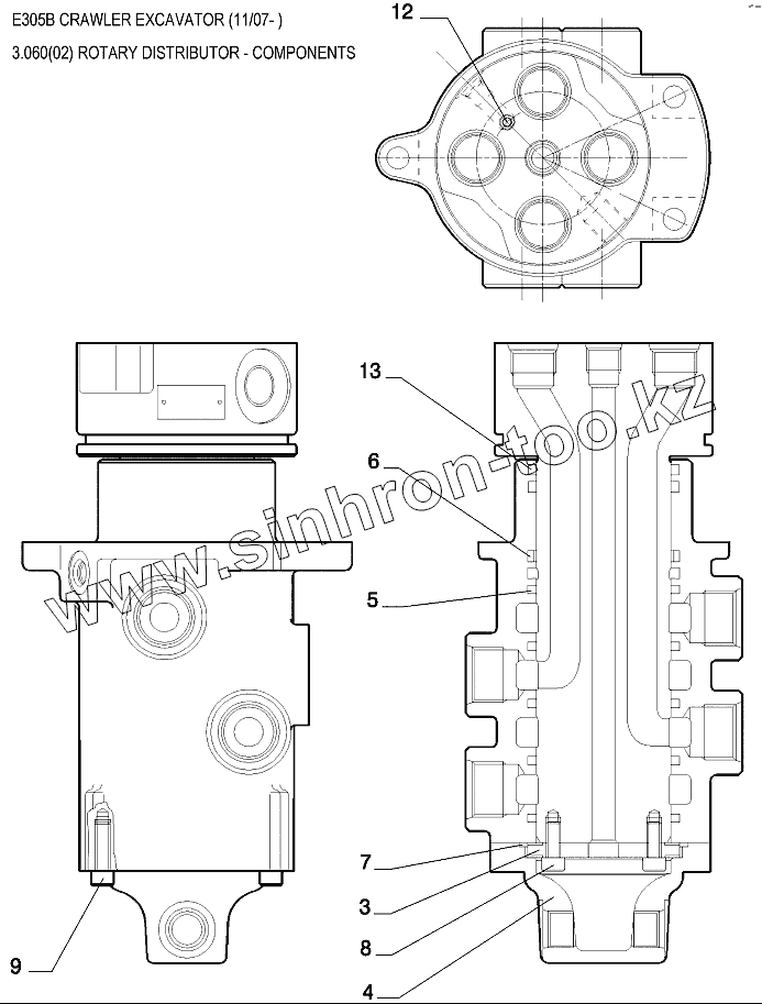 Каталог запасных частей к технике: New Holland Экскаватор E305B. Коллектор центральный