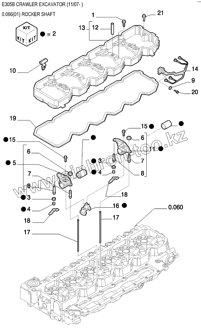Каталог запасных частей к технике: New Holland Экскаватор E305B. Коромысла и толкатели
