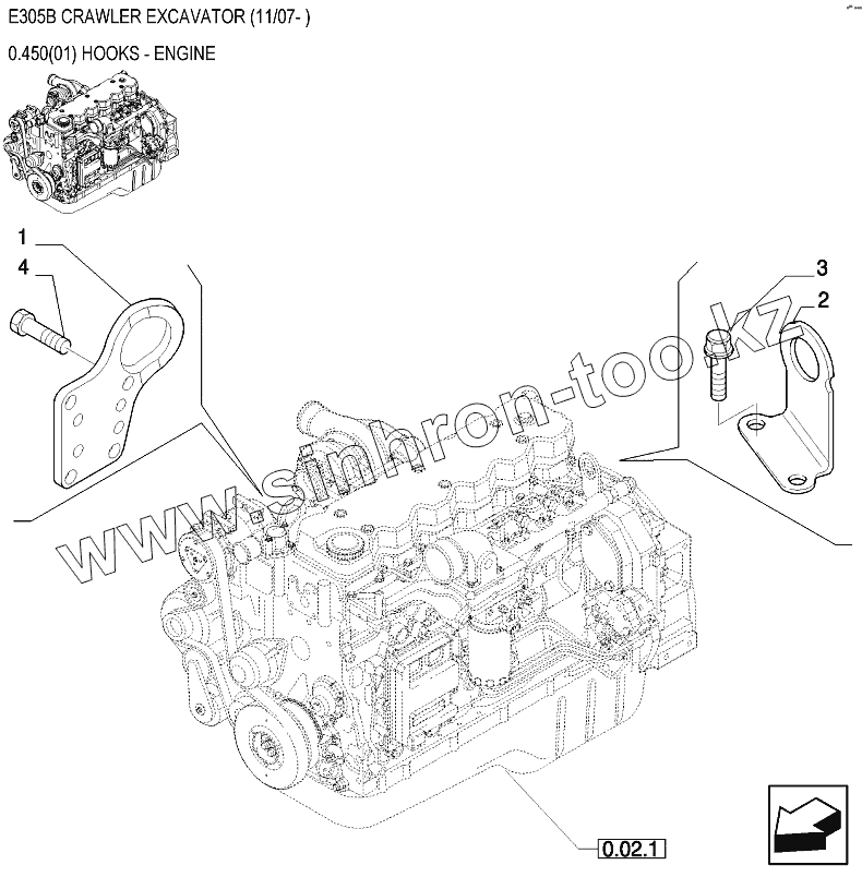 Каталог запасных частей к технике: New Holland Экскаватор E305B. Кронштейны подвески двигателя