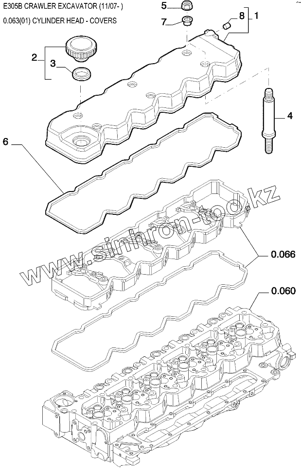 Каталог запасных частей к технике: New Holland Экскаватор E305B. Крышки головки цилиндров