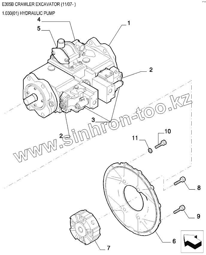 Каталог запасных частей к технике: New Holland Экскаватор E305B. Насос гидравлический