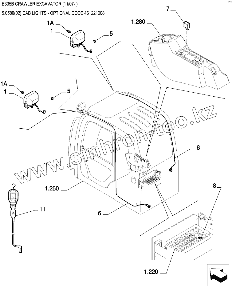 Каталог запасных частей к технике: New Holland Экскаватор E305B. Освещение