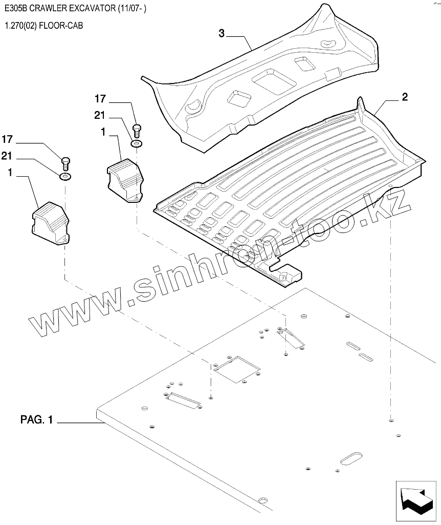 Каталог запасных частей к технике: New Holland Экскаватор E305B. Пол кабины