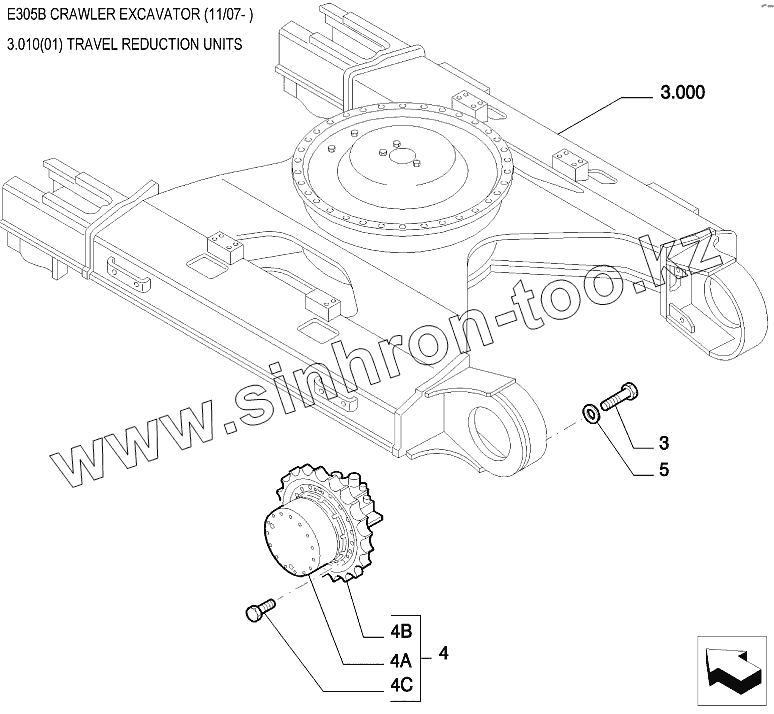 Каталог запасных частей к технике: New Holland Экскаватор E305B. Привод хода