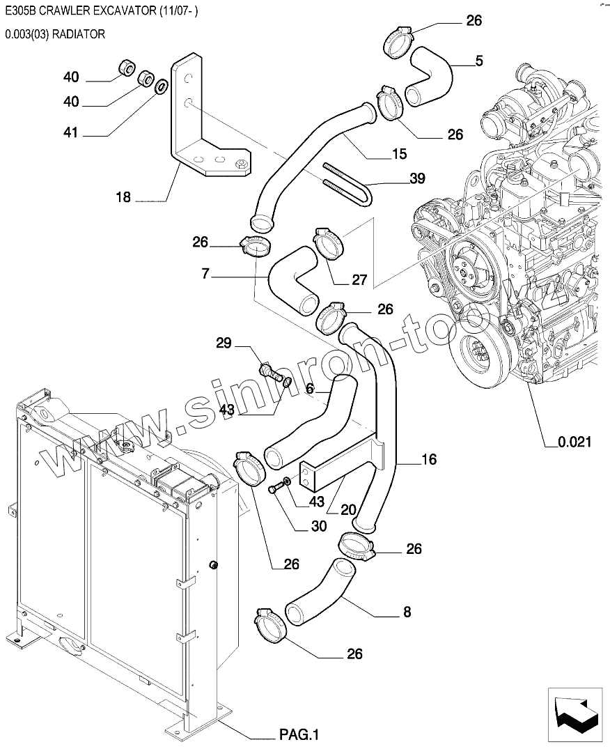 Каталог запасных частей к технике: New Holland Экскаватор E305B. Радиатор