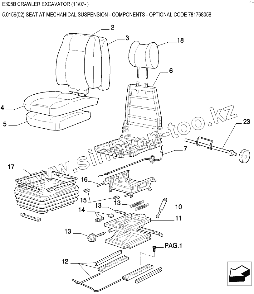 Каталог запасных частей к технике: New Holland Экскаватор E305B. Сиденье оператора с механической подвеской
