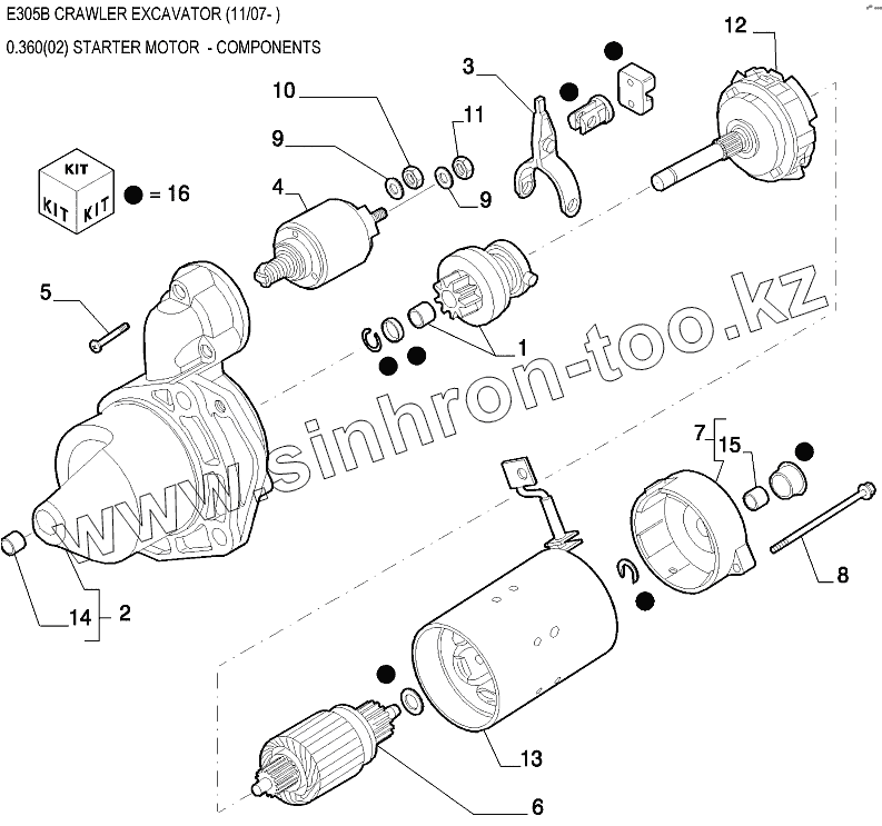 Каталог запасных частей к технике: New Holland Экскаватор E305B. Стартер
