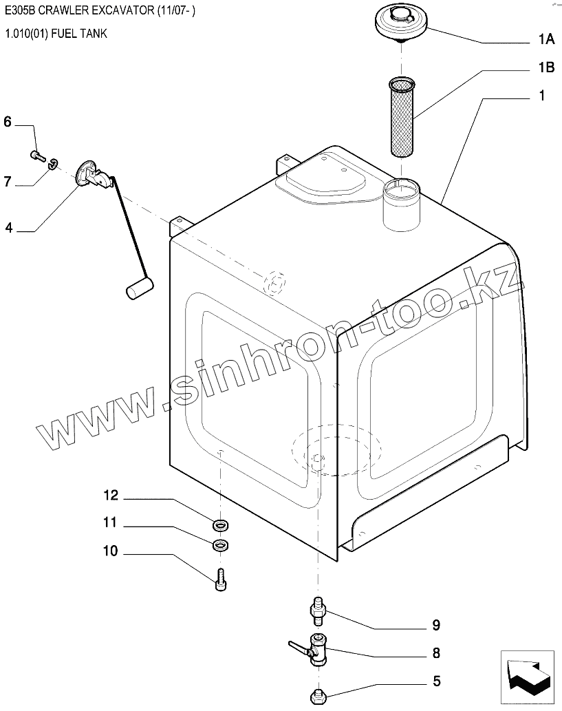 Каталог запасных частей к технике: New Holland Экскаватор E305B. Топливный бак