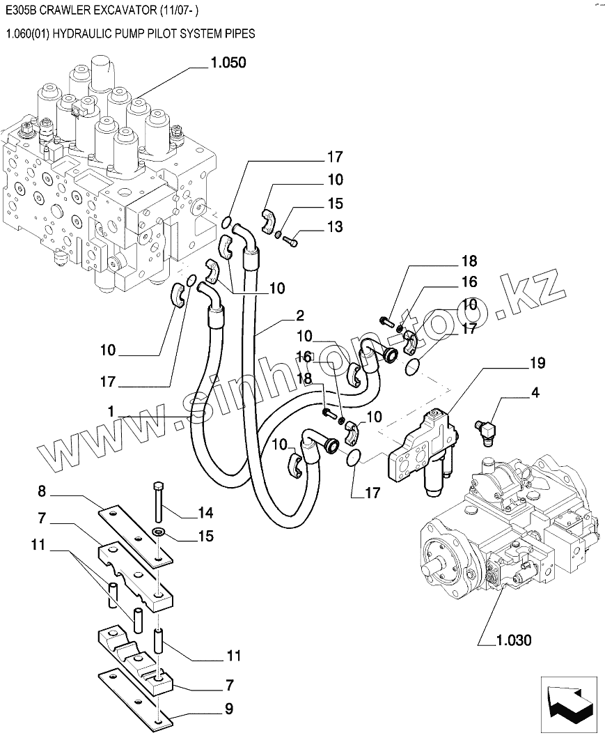Каталог запасных частей к технике: New Holland Экскаватор E305B. Трубопроводы