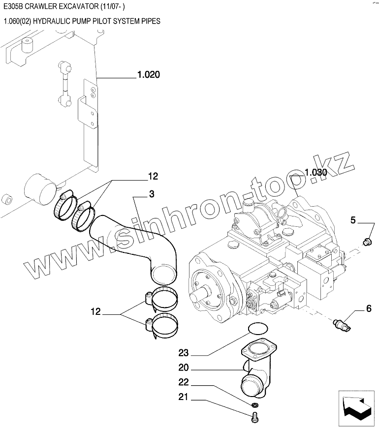 Каталог запасных частей к технике: New Holland Экскаватор E305B. Трубопроводы