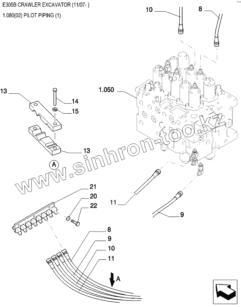 Каталог запасных частей к технике: New Holland Экскаватор E305B. Трубопроводы управления