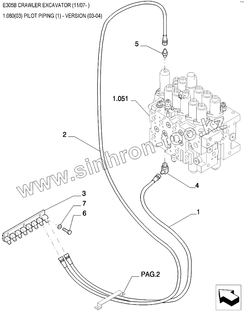 Каталог запасных частей к технике: New Holland Экскаватор E305B. Трубопроводы управления